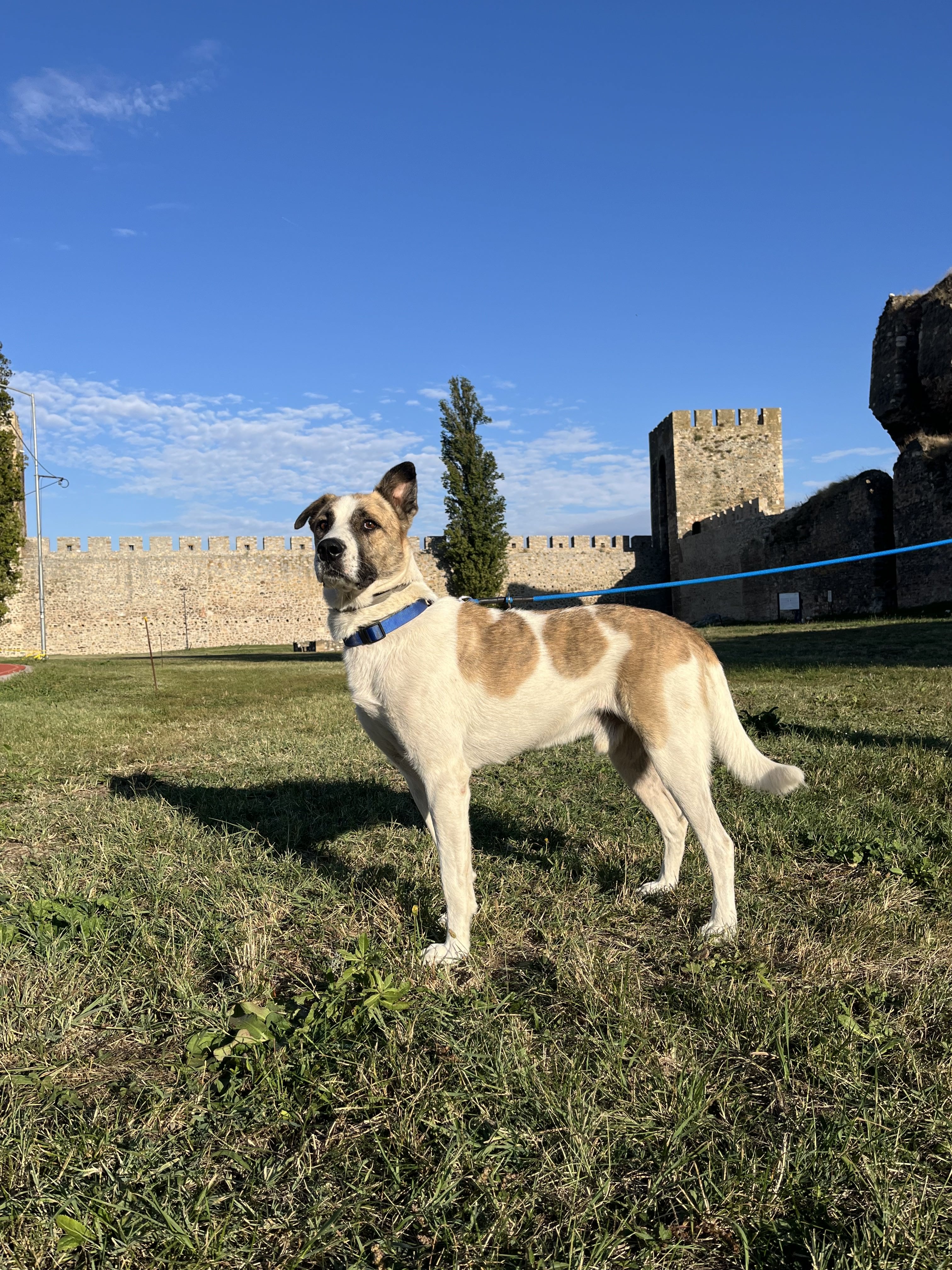 Charakter: Grof (oder Graf) ist ein junger Hund, der – trotz der schweren Zeiten, die er auf der Straße und im Tierheim durchgemacht hat – immer noch verschmust und voller Energie ist. Dieser sanfte Riese, mit einem aufgestellten Ohr und weißem Fell mit einzigartigen braunen Mustern, kann mit seinem Lächeln jeden verzaubern. Er ist sehr intelligent und lernt schnell; er versteht, was „Nein“ bedeutet, weiß, wann er sich setzen und beruhigen soll, liebt Spaziergänge an der Leine und verhält sich im Auto äußerst ruhig.